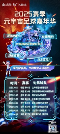 即刻邀约看球搭子!加入中国移动元宇宙社区,参与赛事竞猜、懂球竞答,球迷互动畅聊。