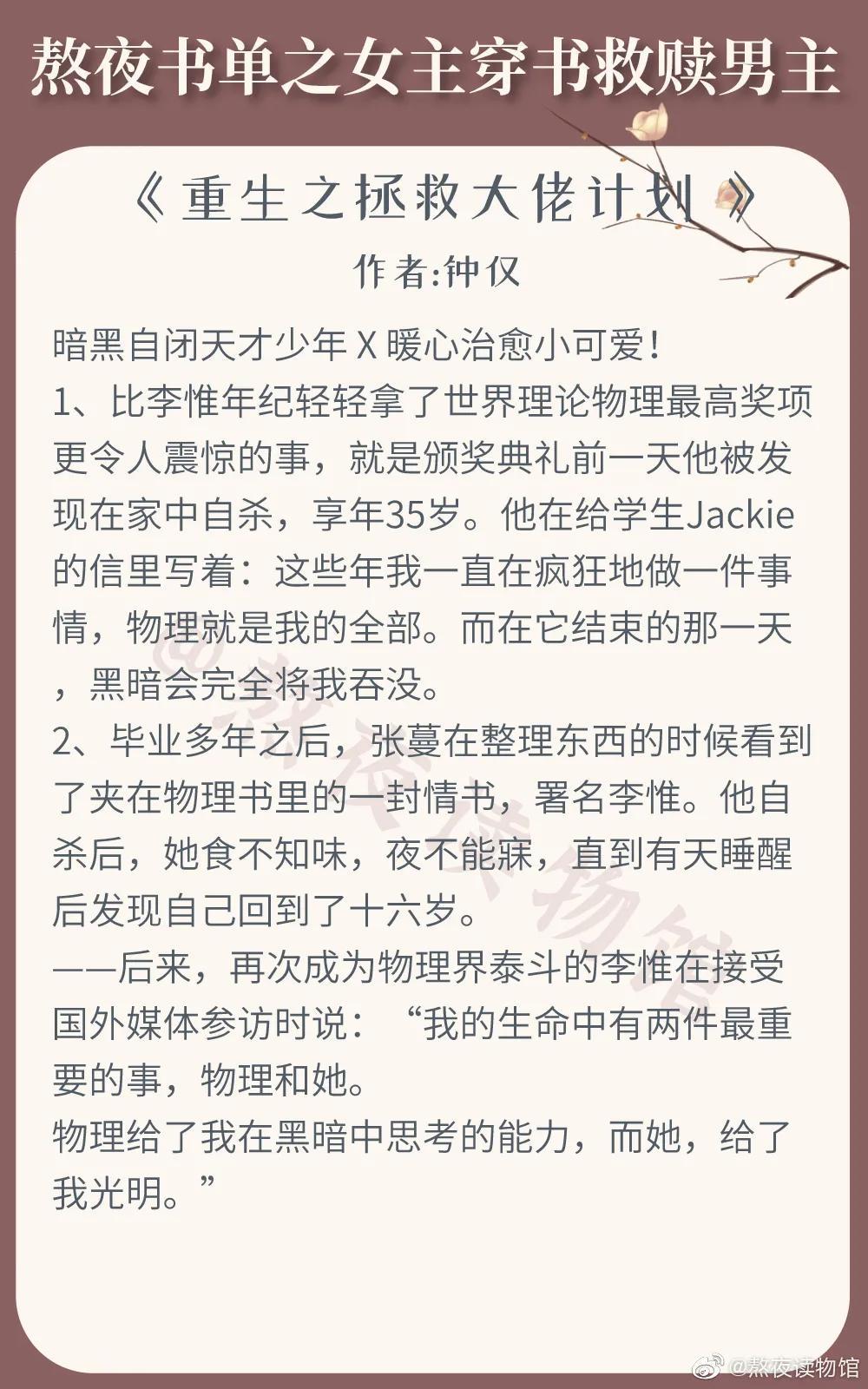 强推!女主穿书治愈救赎男主文系列,《重生之拯救大佬计划》超爱