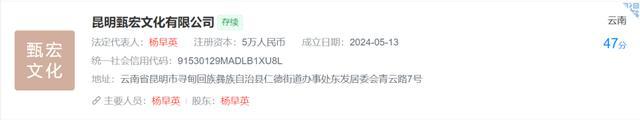 公开报道显示,网红 " 小英 " 原名杨早英,云南寻甸县人。天眼查 APP 显示,杨早英名下共关联四家企业,其中寻甸县小英一家土特产店、昆明甄宏文化有限公司为存续状态,注册地址均为云南省昆明市寻甸县。