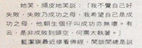 蜗居在赤柱的蓝洁瑛,也曾经想过复出,复出这个念头偶尔会跳进她的脑海。