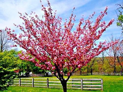 【注】樱花品种繁多,全世界共有150个野生种,我国有50多种。分为单瓣和重瓣两大类。单瓣开花结果,重瓣多数不结果。