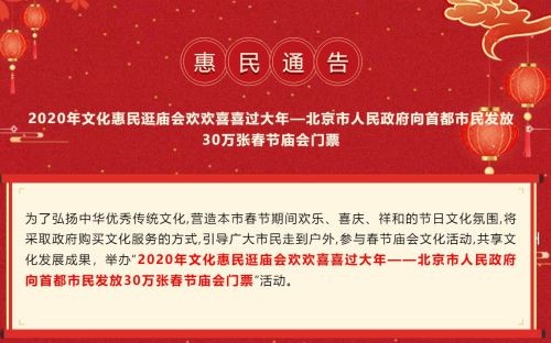 2020年北京30万张春节庙会门票免费抢