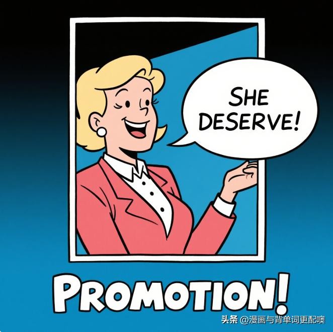例1:She deserves a promotion now.她现在应该升职