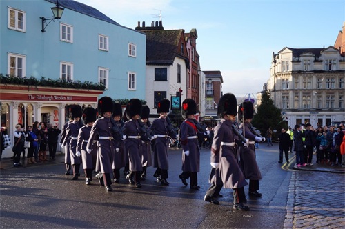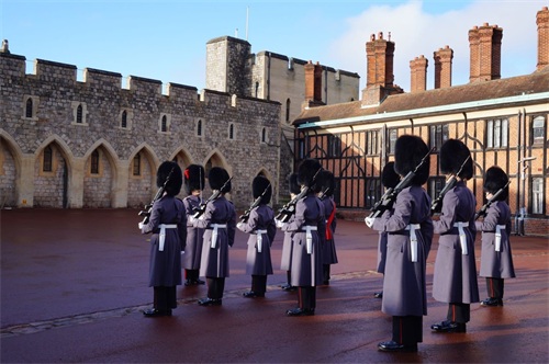 温莎城堡几乎每日都有卫兵换岗仪式。观看卫兵换岗已经成为许多游客来温莎必打卡的项目之一。到了换岗时间,卫兵会奏响乐曲进出城堡。