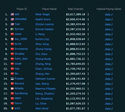 如今电竞已经成为更职业的道路发展,不管是职业选手和赛事。电竞规模越来越大。而电竞大数据也是更加全面。下面游戏GOGO将盘点全球电竞选手收入排行榜。