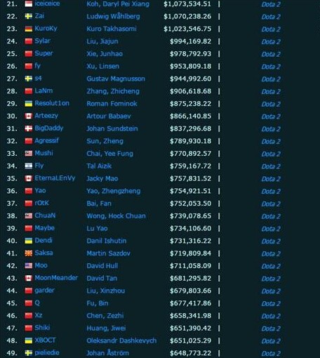 这不得不说本年的职业选手收入已经成为Dota2的天下。