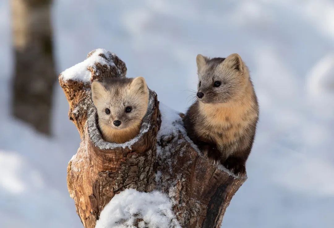 “贴脸开大”的紫貂是“关东三宝”之一,由于栖息地退化和人类对皮毛的需求,紫貂一度几乎灭绝。因长白山良好的生态保护,让它们得以在自然的怀抱中自由生长、繁衍生息。