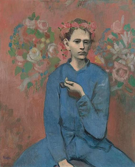 “粉红色”时期以他的杰作中的新角色为标志:艺术家、马戏团表演者。普希金博物馆的《舞会上的少女》也属于这一时期。巴勃罗作品中的悲伤气氛被更轻松、更浪漫的情绪所冲淡。