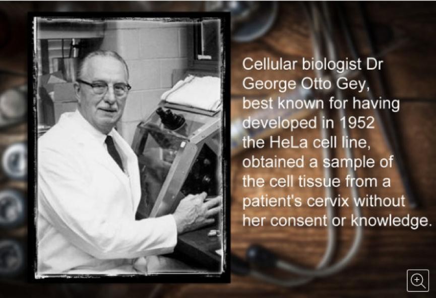 医生在她的宫颈处发现有肿块,于是从该肿块上采集了组织样品,送去实验室进行分析、培养。检查结果显示海瑞塔·拉克斯确诊为宫颈癌。