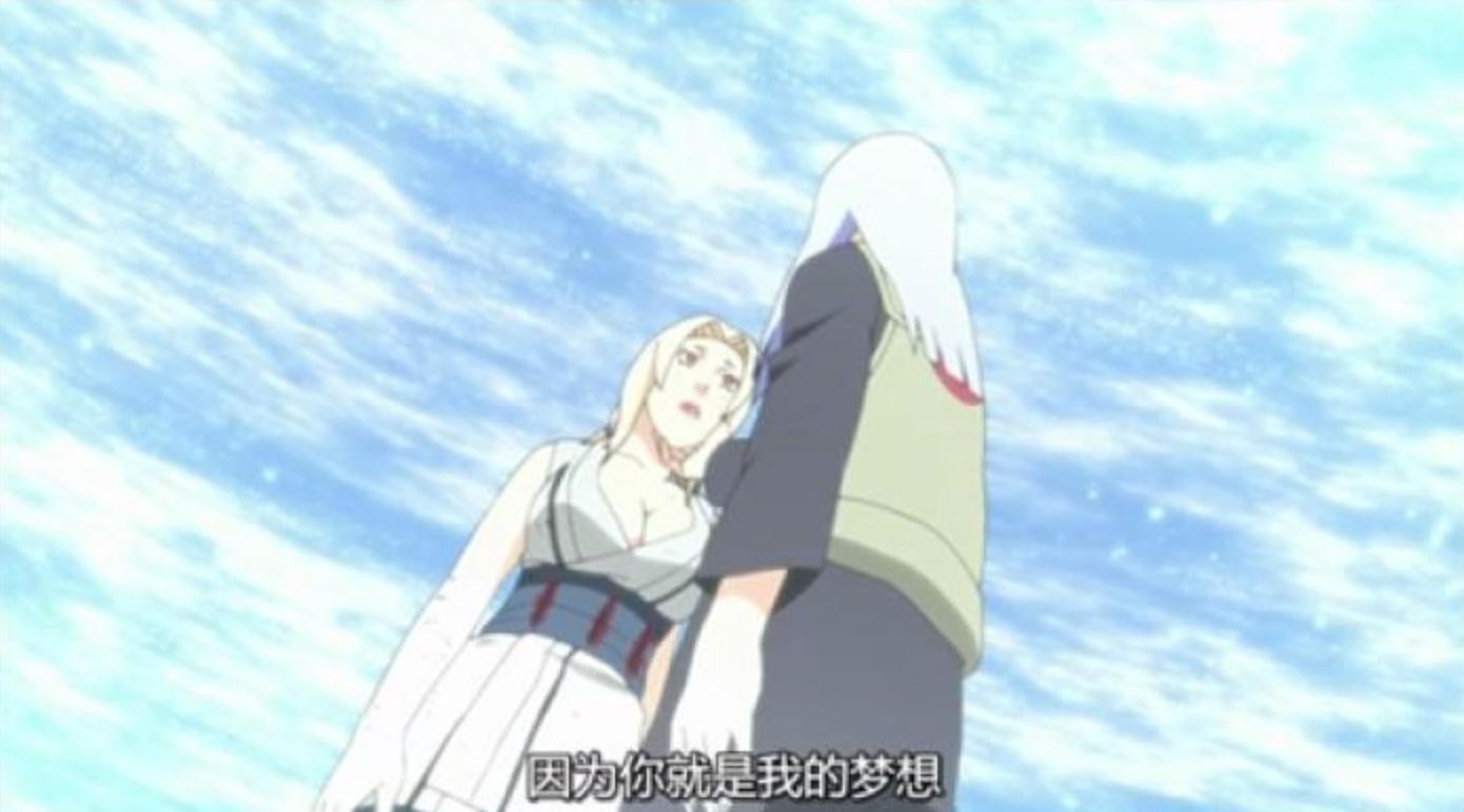 多年来自来也不停地追求纲手,但是最终纲手还是没有答应过自来也的请求,即便是黄昏下的最后一场离别,彼此双方都已经了解了对方的感情,但是最后还是没有点破。