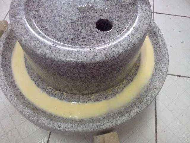 4、用豆油擦一遍鏊子,把糊糊舀到烧好的鏊子上面