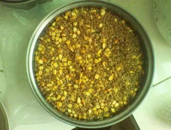 2、在放入水里浸泡一晚上,为了好吃可以加一点黄豆,同样浸泡一晚。