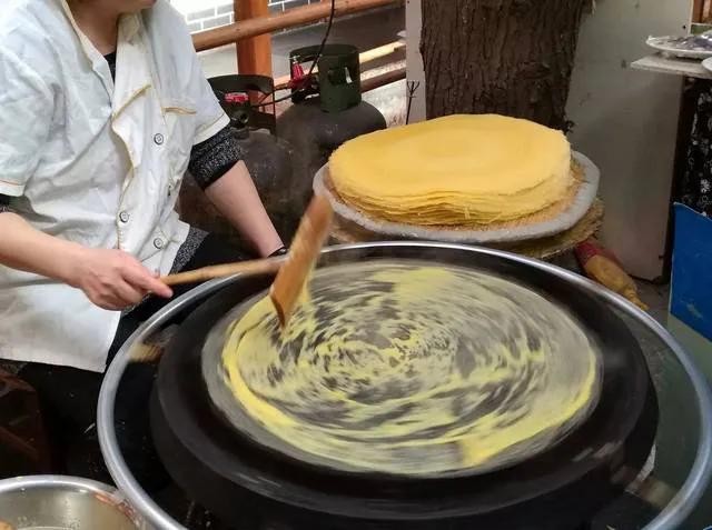三是泰山煎饼薄如蝉翼,几乎透明。煎饼吃起来略带酸味,香软可口