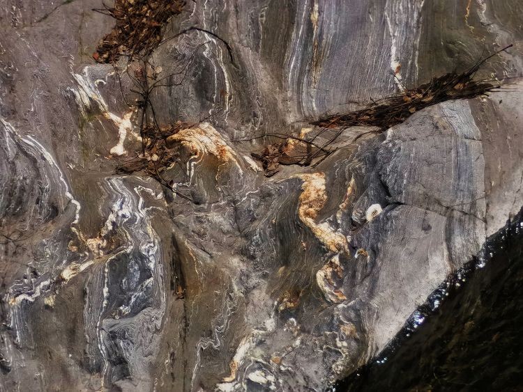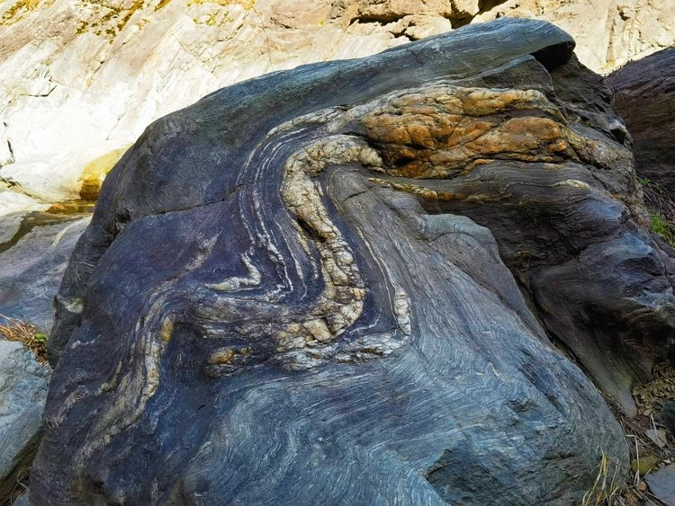 金龙峡峡谷的石龙,有的在流水中时隐时现,有的在河道两侧聚集相会,有的悄藏于幽潭深渊,有的掩映于草丛之中,千姿百态,栩栩如生。