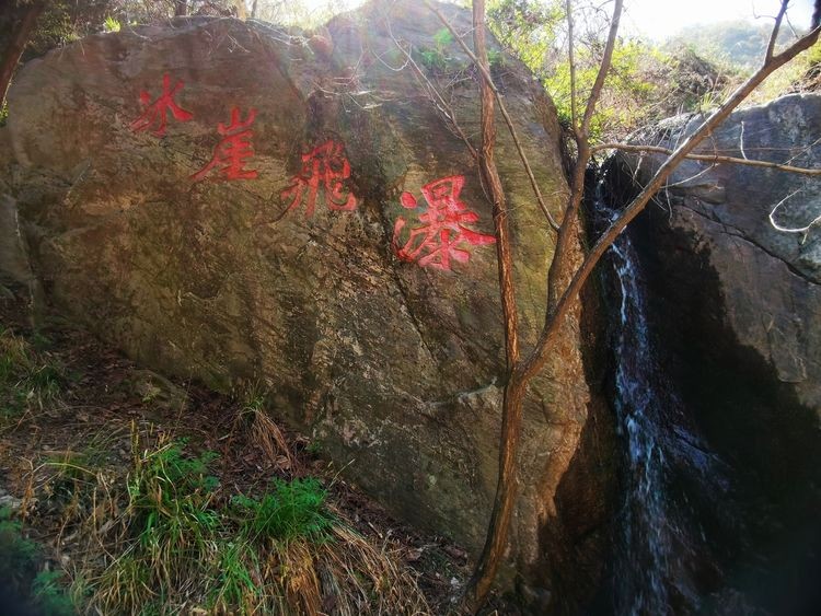 冰岩飞瀑,岩顶汇集的溪流,凌空飞溅而下,如扯开的一条纤柔的绢丝,飘荡着落入山涧。
