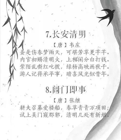 “清明时节雨纷纷,路上行人欲断魂。”清明是我国的传统节日,在这一时节,人们追思怀远,感怀先人。古往今来,描写清明的佳句很多:“梨花风起正清明,游子寻春半出城”、“燕子来时新社,梨花落后清明”…… 关于清明的诗词,你知道几首?