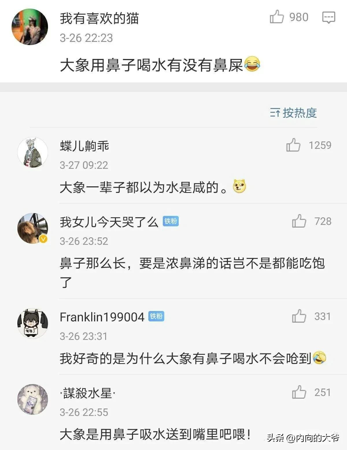 问?大象用鼻子喝水,有没有鼻屎?