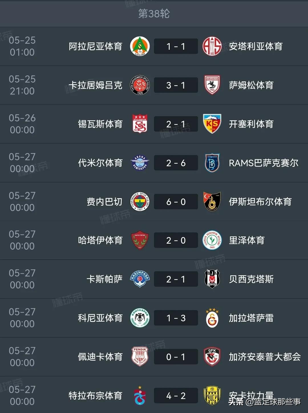 土超积分榜:加拉塔萨雷102分夺队史24冠,费内巴切参加欧冠资格赛