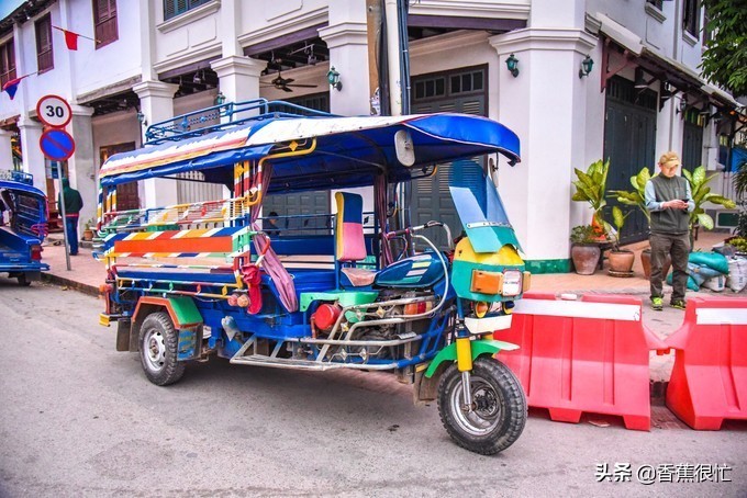 18.老挝很少有正规出租车,更多的是嘟嘟车,装饰得五颜六色,招揽客人