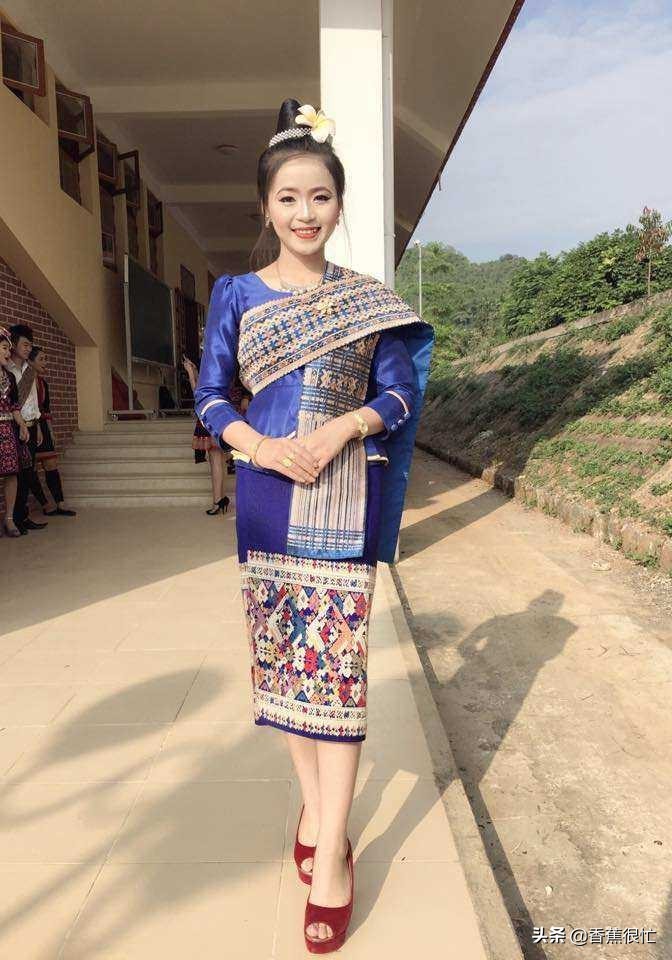 11.老挝女人喜欢穿筒裙,特别是会在裙尾绣上自己漂亮的花纹图案。在学校里,用裙尾花纹图案就能区分出年级。