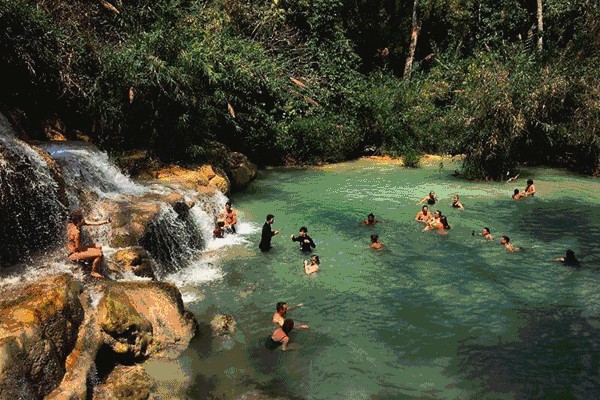 28.在老挝南部农村,当地人喜欢在干净清凉的小溪里面洗澡,不忙的时候,要泡上一整天。