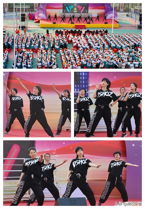 音乐变幻,音符跳跃,高低音起落,刚刚荣获“禅城区中小学生健美操啦啦操比赛”特等奖的澜石中学街舞队一展《发光吧,少年》的无限魅力;同获特等奖的啦啦操《最好的舞台》张扬着活力四射的青春,演绎着振奋人心的激情旋转、翻腾、自由摇摆,佛山市第三中学的动感舞姿散发出自信的光芒;澜中老师们将欢快舞姿化作奋进之态,昂首阔步,传承澜中理想之光,精神之魂。