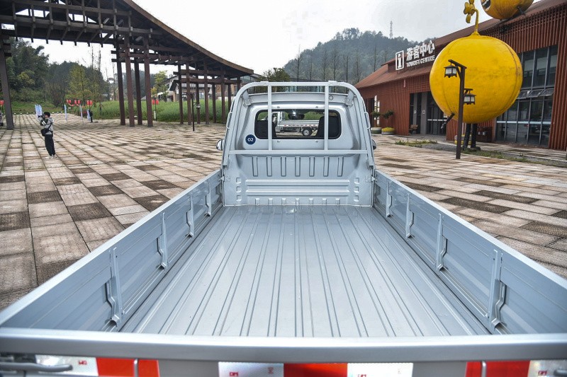 装载方面,新长安星卡采用了加强型货箱设计,货箱边板厚度5cm,最大额载1.1吨,搭配上3H高刚性车架+8根横梁+6片板簧,带来更强的承载能力。