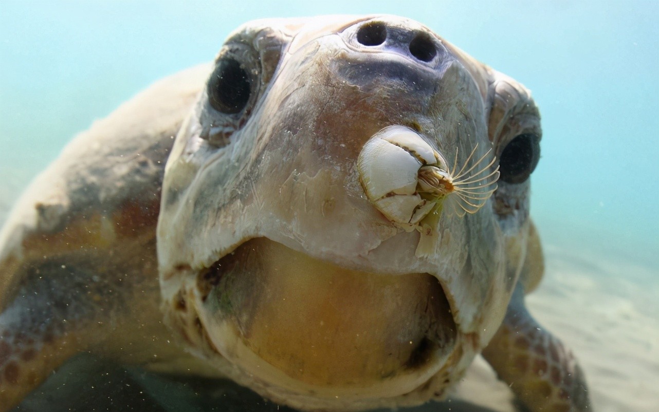 图注:一只被藤壶寄生的海龟