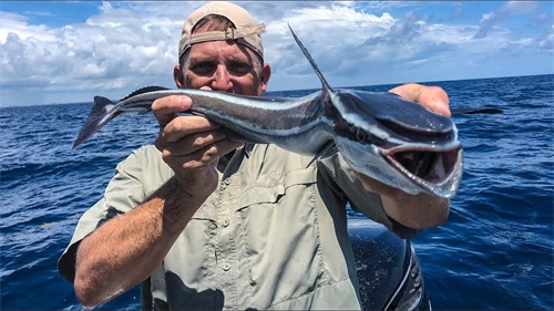在吸盘鱼的尾巴搬上鱼线,看见大鱼就把它丢下去,出于本能它会快速寻找一个可以粘附的大型动物。