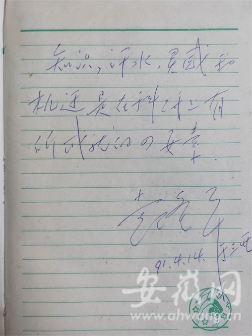 此后,吴险峰经常能在海南遇到袁老。他还记得1991年4月的一天,他跟袁隆平院士汇报了广德农科所取得的一些研究成果后,袁老十分高兴,还在吴险峰的笔记本上写下“知识、汗水、灵感和机遇是从事科研工作的四要素”勉励他的话。“这坚定了我的工作方向和目标,让我受益终身。”吴险峰说,这个笔记本他至今都细心地保存着。