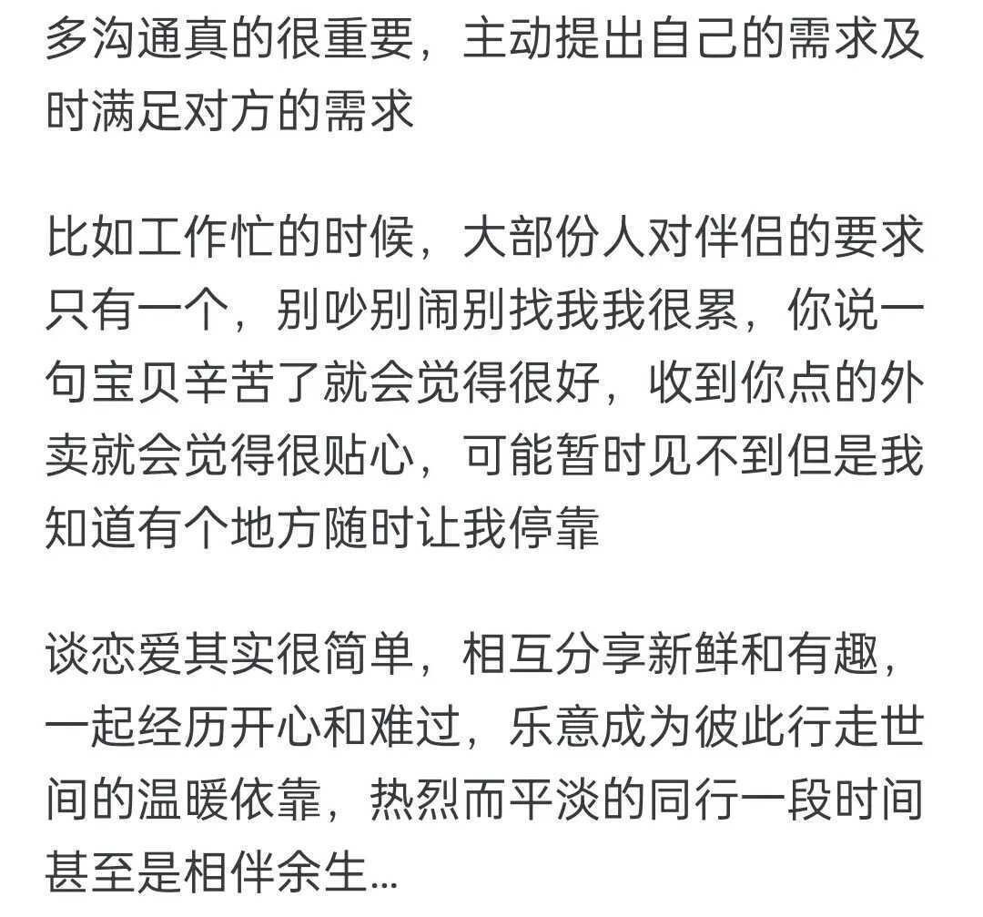说到这儿,咱再来看看网友们的经验之谈。有人说,爱情就是要“懂你”;有人说,爱情就是要“陪你”;还有人说,爱情就是要“一起成长”。其实啊,这些说的都是一个道理——珍惜、包容、沟通、情感智慧,都是让爱情保鲜的秘诀!