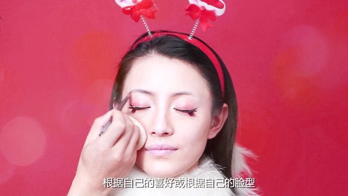 Step5:可以选择一款夸张的假睫毛,看起来特别有节日气氛,毛绒绒的大眼睛会格外吸引人呢。
