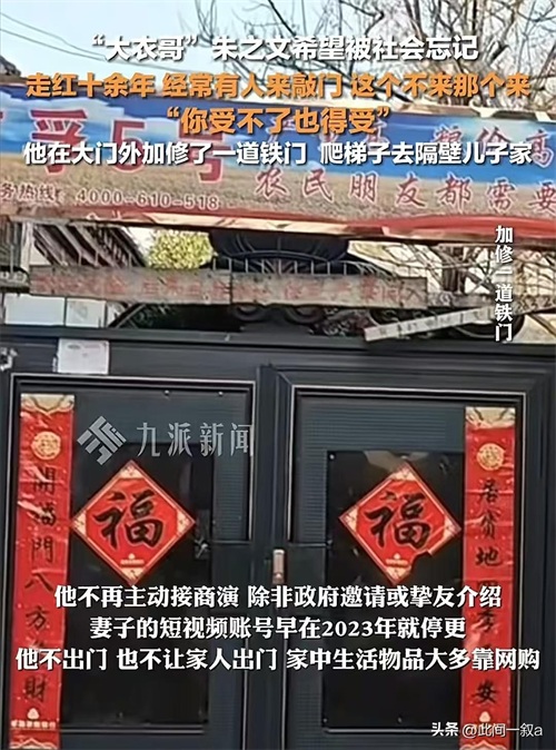 但朱之文名气越来越大,数不清的麻烦事和网络暴力也接踵而至,成名这么多年,他没有一天清静过,在刚刚过去的新年,他家就被闹得不可开交。