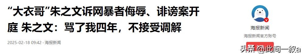 海报新闻:2025年2月18日《“大衣哥”朱之文诉网暴者侮辱、诽谤案开庭 朱之文:骂了我四年,不接受调解》