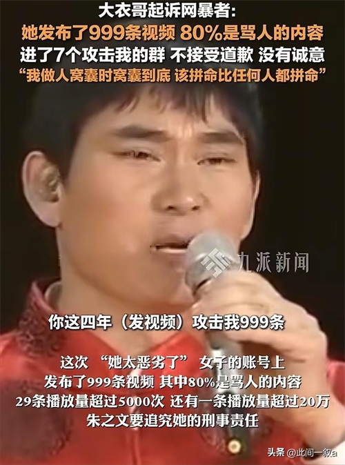 4年,999条视频,80%都在攻击辱骂大衣哥,他实在想不明白,对方和自己素不相识,为什么会有这么大的恶意?无论怎样,他不愿再忍,2月18日,朱之文起诉网暴者一案正式开庭。