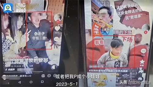朱之文的头像被恶意P到各种低俗、荒诞的画面中,配上“打倒大衣哥”等刺眼的文字,而他的父母、儿子、儿媳,甚至几个月大的孙子,都没能逃过她的毒手。
