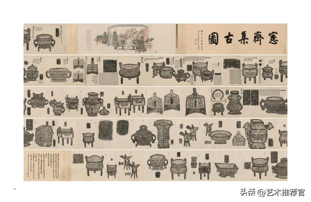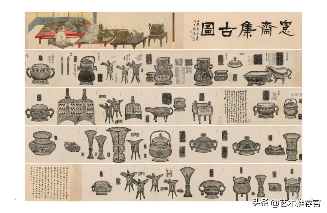 《愙斋集古图》是上海博物馆所藏的两个长幅图卷,它通过绘画、墨拓的形式集中展现了晚清金石学家吴大澂当年收藏的金石文物,以及吴大澂对其中部分青铜器的鉴赏和研究。