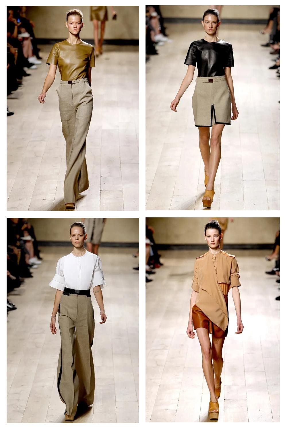 2010年春夏是作为Céline创意总监的第一个秀场,也大致铺陈了她之后极简当道的风格:皮制T-shirt、一丝累赘也没有的宽口裤。“对我来说,专注于衣服本身的创意比追求太多潮流要好。”