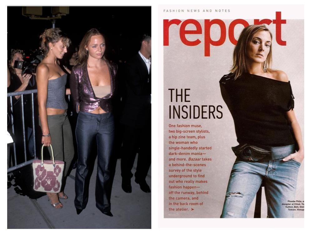 1999年,Phoebe与Stella McCartney出席Chloé纽约店的开幕式,两人合照记录了Phoebe罕见的Y2K风格造型,穿着紧身胸衣和低腰裤的Phoebe还是一副青涩的面孔。2000年还是Stella McCartney设计助理的Phoebe出现在Harper's BAZAAR,腰部的Vintage腰带和牛仔裤,颇为桀骜清冷。
