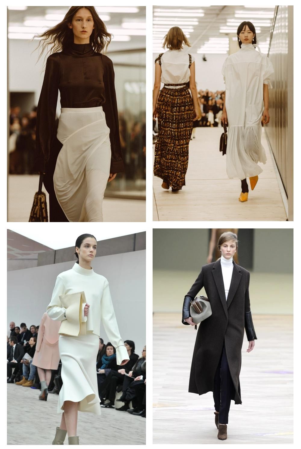 2009年Phoebe在Céline的首个秀场谢幕时,上身衬衣,下身直筒裤和一双平底鞋,正是简易的基础款三件套,让Phoebe的优雅感成为难以被替代的经典。