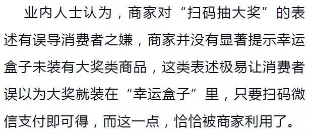 业内人士认为,以扫奖为名义,兜售低价值商品,甚至是三无产品,已涉嫌违法,严重侵害了消费者合法权益,有关部门应当对此尽快予以查处。