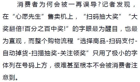 “心愿先生”的左边货架上有20个格子,分别对应右侧的屏幕的20个号码。消费者在选中自己中意的号码后,就会弹出一个微信支付二维码,扫码支付30元后,对应位置的盒子就会从货架上掉下来。幸运盒子里除有一个商品外,还有一张刮刮卡。整个交易过程,完全类似于平时使用的自动售货机。