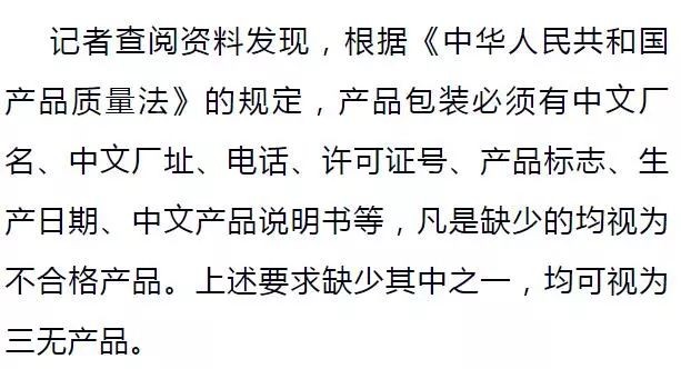 但当记者想仔细比对产品质量时,发现手中的商品既没有生产厂家,也没有产品合格证,更没有许可证号。