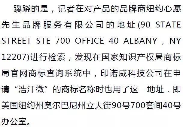 纽约心愿先生品牌服务有限公司与印诺威科技公司是一个公司吗?纽约心愿先生品牌服务有限公司是否真实存在,仍不得而知。