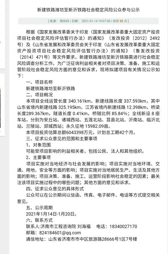 高铁普铁:京沪高铁二线已确定东线方案,从潍坊北站引出后,在安丘城东设安丘站,大体位于许戈村东附近,安丘从无一寸铁路一步跨入高铁时代,2小时即可抵京达沪。2021年1月14至20日,京沪高铁二线社会风险信息已在临沂市政府及潍坊交通局网站进行公示,沿途勘探定测已开始,有望年内开工建设。