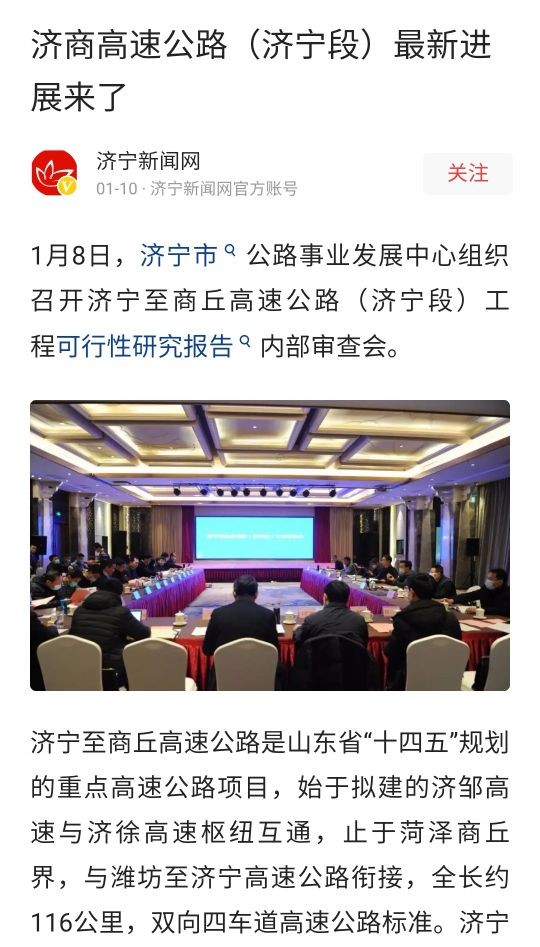 2021年1月8日,济宁市公路事业发展中心组织召开济宁至商丘高速公路(济宁段)工程可行性研究报告内部审查会。