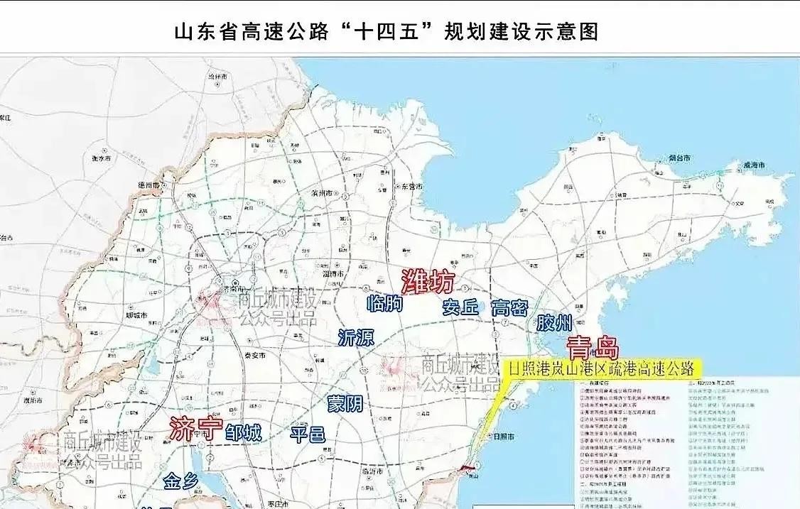 另据山东省十四五高速公路规划图显示,潍商(潍坊至济宁至商丘)高速自安丘南潍青高速殷家洼村继续向西延,经辉渠、吾山折向西南,经蒙阴、济宁到商丘,直插中原腹地,未来安丘将成为胶东半岛通向鲁西南,经济宁到商丘出省黄金大通道的重要节点城市,高速枢纽位置将更加巩固。