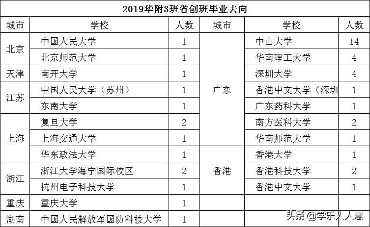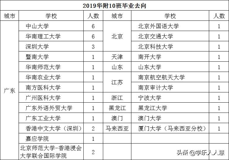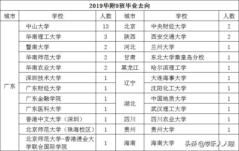 2019预录取学生主要来源于广雅实验(1人)、育才实验(6人)、海珠外国语(1人)、聚德中学(1人)、天河外国语(4人)、天河中学(1人)、华附(12人)、省实天河(2人)、华附新世界(1人)、桥兴中学(1人)。