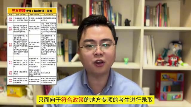 大家好,上一节视频讲了三大专项中的国家专项,主要是针对贫困地区考生的。今天来讲讲三大专项中的地方专项,这个是针对农村地区考生的。