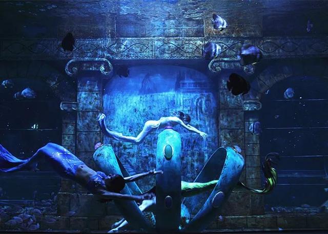 在海洋深处,梦幻的鱼人宫殿里,全新的美人鱼秀等你来欣赏。让你仿佛走进童话故事,与宫殿中的人鱼公主一起畅游海底。